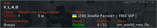 Играет на Counter Strike 1.6 сервере. Страна: УкраинаПервый раз замечен 13:34 13.04.2026