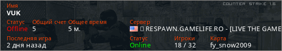 Играет на Counter Strike 1.6 сервере. Страна: СШАПервый раз замечен 13:39 03.04.2026