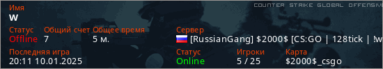 Играет на Counter Strike Global Offensive сервере. Страна: РоссияПервый раз замечен 19:56 10.01.2025