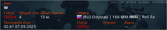Играет на Counter Strike Global Offensive сервере. Страна: РоссияПервый раз замечен 10:33 08.04.2025
