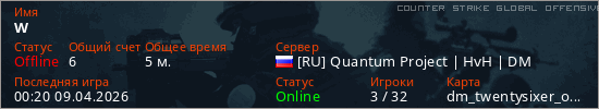 Играет на Counter Strike Global Offensive сервере. Страна: РоссияПервый раз замечен 23:30 08.04.2026