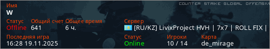 Играет на Counter Strike Global Offensive сервере. Страна: КазахстанПервый раз замечен 12:54 21.01.2025