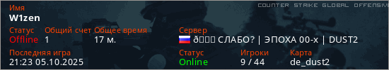 Играет на Counter Strike Global Offensive сервере. Страна: РоссияПервый раз замечен 10:17 07.09.2025