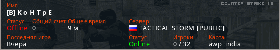 Последний раз был в сети Вчера Игрок с таким ником замечен на 53 серверах