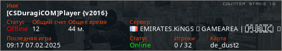 Последний раз был в сети 09:17 07.02.2025 Игрок с таким ником замечен на 23 серверах