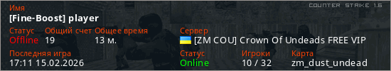 Играет на Counter Strike 1.6 сервере. Страна: УкраинаПервый раз замечен 16:33 15.02.2026