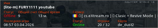 Играет на Counter Strike 1.6 сервере. Страна: РумынияПервый раз замечен 05:20 03.04.2026