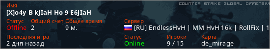 Играет на Counter Strike Global Offensive сервере. Страна: РоссияПервый раз замечен 00:48 04.12.2025
