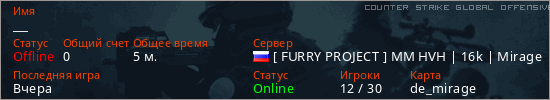 Играет на Counter Strike Global Offensive сервере. Страна: РоссияПервый раз замечен 16:45 05.03.2026