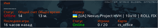 Последний раз был в сети 14 часов назад Игрок с таким ником замечен на 23 серверах