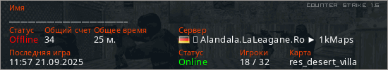 Последний раз был в сети 11:57 21.09.2025 Игрок с таким ником замечен на 31 сервере