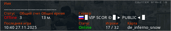 Играет на Counter Strike 1.6 сервере. Страна: РоссияПервый раз замечен 21:57 12.11.2025