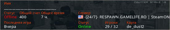 Последний раз был в сети Вчера Игрок с таким ником замечен на 31 сервере