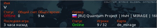 Последний раз был в сети Час назад Игрок с таким ником замечен на 9 серверах