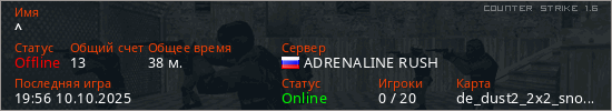Играет на Counter Strike 1.6 сервере. Страна: РоссияПервый раз замечен 18:50 06.10.2025
