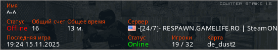 Последний раз был в сети 19:24 15.11.2025 Игрок с таким ником замечен на 27 серверах