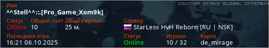 Играет на Counter Strike Global Offensive сервере. Страна: РоссияПервый раз замечен 08:21 24.09.2025