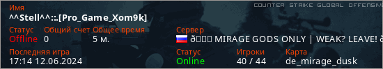 Играет на Counter Strike Global Offensive сервере. Страна: РоссияПервый раз замечен 16:22 12.06.2024
