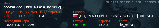Играет на Counter Strike Global Offensive сервере. Страна: РоссияПервый раз замечен 23:23 18.08.2025