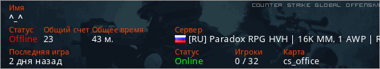 Играет на Counter Strike Global Offensive сервере. Страна: РоссияПервый раз замечен 10:25 04.05.2025