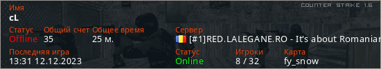 Играет на Counter Strike 1.6 сервере. Страна: РумынияПервый раз замечен 04:13 19.02.2023