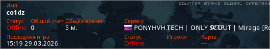 Играет на Counter Strike Global Offensive сервере. Страна: РоссияПервый раз замечен 15:17 29.03.2026