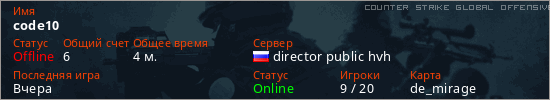 Играет на Counter Strike Global Offensive сервере. Страна: РоссияПервый раз замечен 16:49 23.04.2026