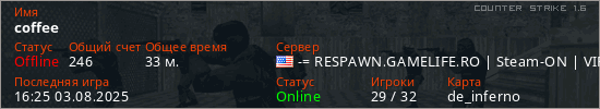 Играет на Counter Strike 1.6 сервере. Страна: СШАПервый раз замечен 15:12 31.07.2025