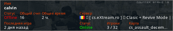Играет на Counter Strike 1.6 сервере. Страна: РумынияПервый раз замечен 08:06 05.11.2025