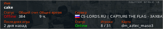 Играет на Counter Strike 1.6 сервере. Страна: РоссияПервый раз замечен 19:46 31.07.2021