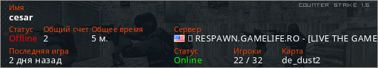 Играет на Counter Strike 1.6 сервере. Страна: СШАПервый раз замечен 00:42 15.04.2026