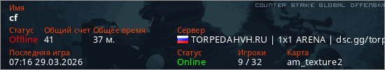 Играет на Counter Strike Global Offensive сервере. Страна: РоссияПервый раз замечен 08:44 24.03.2026