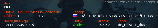 Играет на Counter Strike Global Offensive сервере. Страна: РоссияПервый раз замечен 21:24 28.01.2025