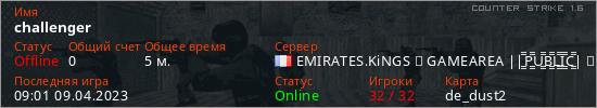 Играет на Counter Strike 1.6 сервере. Страна: ФранцияПервый раз замечен 08:27 09.04.2023