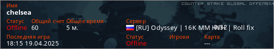 Играет на Counter Strike Global Offensive сервере. Страна: РоссияПервый раз замечен 18:09 19.04.2025