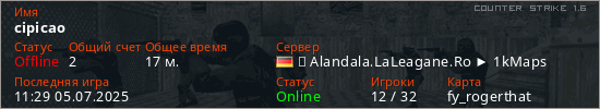 Последний раз был в сети 11:29 05.07.2025 Игрок с таким ником замечен на 6 серверах