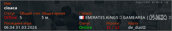 Играет на Counter Strike 1.6 сервере. Страна: ФранцияПервый раз замечен 06:20 31.03.2026