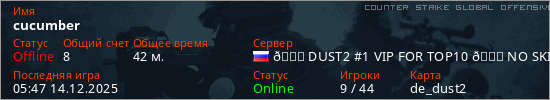 Играет на Counter Strike Global Offensive сервере. Страна: РоссияПервый раз замечен 10:03 29.12.2024