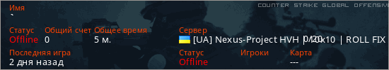 Играет на Counter Strike Global Offensive сервере. Страна: УкраинаПервый раз замечен 09:34 18.01.2026