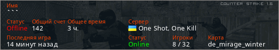 Играет на Counter Strike 1.6 сервере. Страна: УкраинаПервый раз замечен 15:42 08.01.2026