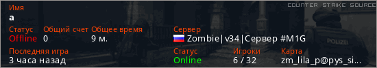 Играет на Counter Strike Source сервере. Страна: РоссияПервый раз замечен 17:14 22.09.2025