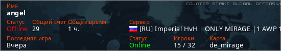 Играет на Counter Strike Global Offensive сервере. Страна: РоссияПервый раз замечен 05:01 19.09.2025