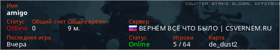 Последний раз был в сети Вчера Игрок с таким ником замечен на 35 серверах