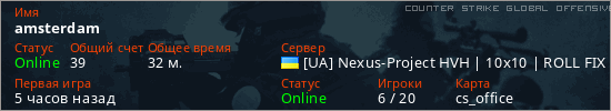 Играет на Counter Strike Global Offensive сервере. Страна: УкраинаПервый раз замечен 16:12 24.02.2026