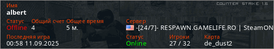 Играет на Counter Strike 1.6 сервере. Страна: СШАПервый раз замечен 00:54 11.09.2025