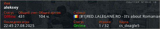 Играет на Counter Strike 1.6 сервере. Страна: РумынияПервый раз замечен 22:16 20.02.2025