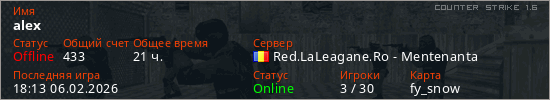 Играет на Counter Strike 1.6 сервере. Страна: РумынияПервый раз замечен 23:34 18.06.2022
