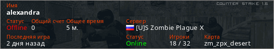 Играет на Counter Strike 1.6 сервере. Страна: РоссияПервый раз замечен 15:54 20.01.2026