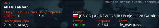Играет на Counter Strike Global Offensive сервере. Страна: РоссияПервый раз замечен 15:32 31.03.2026
