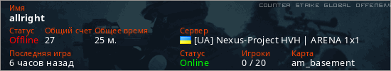Играет на Counter Strike Global Offensive сервере. Страна: УкраинаПервый раз замечен 15:04 23.01.2026